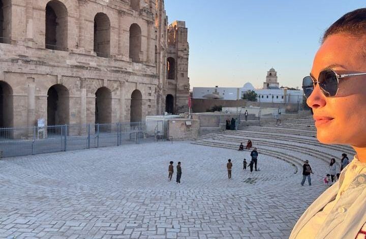 نشرت الفنانة هند صبري صورة لها من تونس على حسابها الشخصي على موقع تبادل الصور والفيديوهات إنستجرام الاجتماعي، وكتبت تحتها هذه “ليست روما هذه تونس “