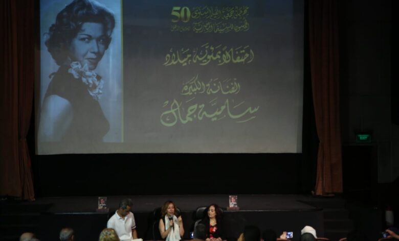 نظم مهرجان جمعية الفيلم السنوي، ضمن فعاليات دورته الخمسين، يوم الأحد 2 يونيو، ندوة للاحتفاء بمئوية ميلاد الفنانة والنجمة الاستعراضية الكبيرة سامية جمال، شهدت توقيع كتاب الفراشة للكاتبة ناهد صلاح، بحضور منيرة أباظة، الأخت غير الشقيقة للفنان الراحل رشدي أباظة، والذي تزوج من سامية جمال سنوات طويلة، وأدار الندوة مصطفى الطيب.