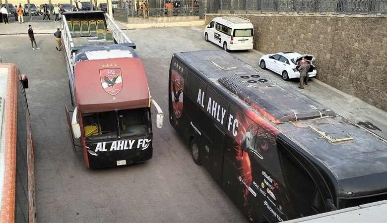 حافلة الأهلي تصل استاد القاهرة لمواجهة العين الإماراتي في كأس انتر كونتيننتال