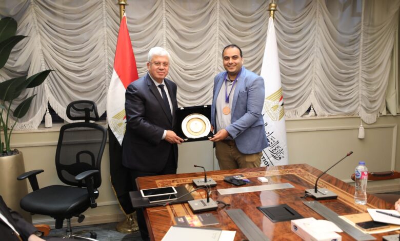 وزير التعليم العالي يكرم المهندس مصطفى السيد لحصوله على الميدالية البرونزية في المعرض الدولي للاختراعات بكوريا الجنوبية