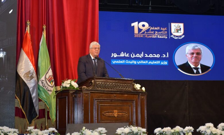 بحضور نائب رئيس مجلس الوزراء للتنمية البشرية ووزير الثقافة ورئيس جامعة القاهرة ونخبة من العلماء والشخصيات العامة وزير التعليم العالي يشهد الاحتفال بعيد العلم التاسع عشر لجامعة القاهرة