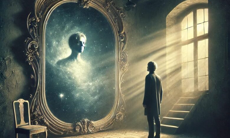 مع كل نظرة أعمق إلى المرآة، كان يشعر أن حدود الغرفة تختفي، وتصبح جدرانها امتدادًا لفضاء لا نهاية له. سمع صوتًا أشبه بهمس النجوم يقول له:
