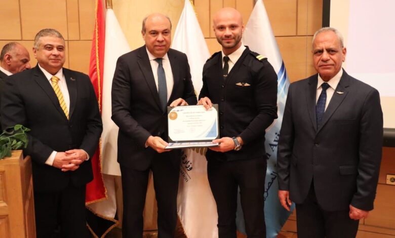 تحت راية وزارة المطار المدني واتخرجت في 18/ 2 اللي فات وكرمني وزير الطيران المدني.