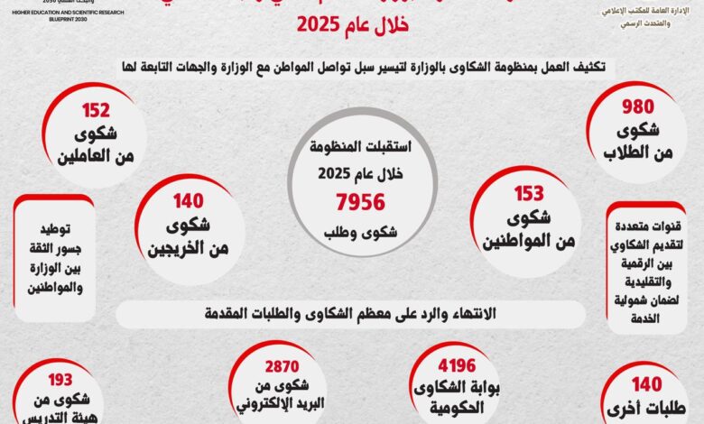 الإدارة العامة لخدمة المواطنين بوزارة التعليم العالي والبحث العلمي تستجيب لـ 7,956 شكوى خلال العام المالي 2024/2025