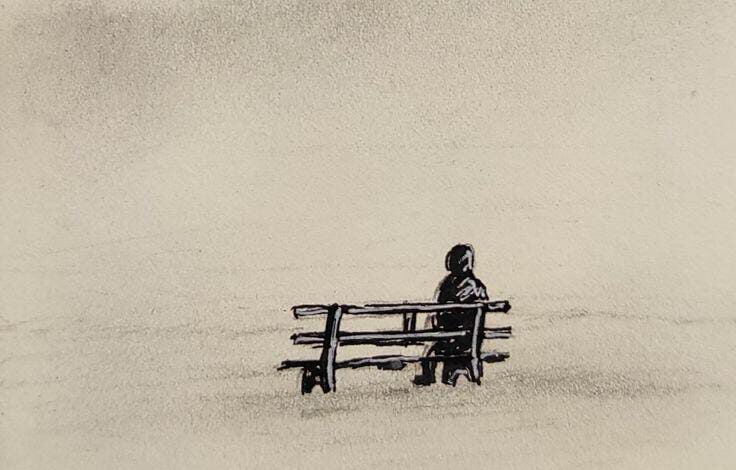 هنا على المقعدِ المدرسي، كنا نتداعب ونتخاصم، ويضربنا المعلمون أيضًا إن أزعجناهم، فنجلس وتلامس أيدينا أيدي بعضنا؛ كي نخفف الألم، ونضحك كل فنيةٍ حال نذكر السبب، وكأن شيئًا لم يكن.