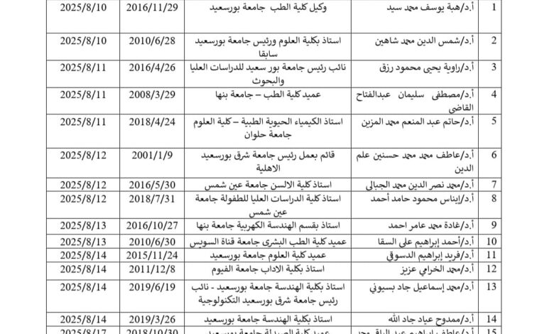 التعليم العالي: إعلان القائمة المبدئية للمرشحين لمنصب رؤساء خمس جامعات أهلية