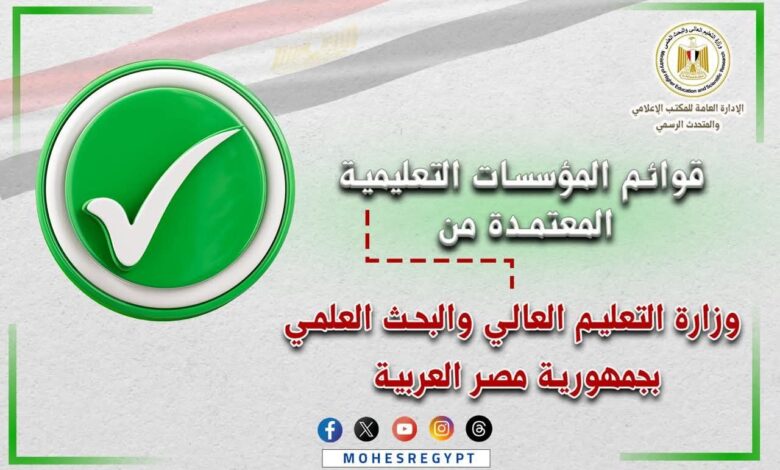 التعليم العالي تعيد نشر القوائم المُحدثة لمؤسسات التعليم العاليالمُعتمدة بجمهورية مصر العربية