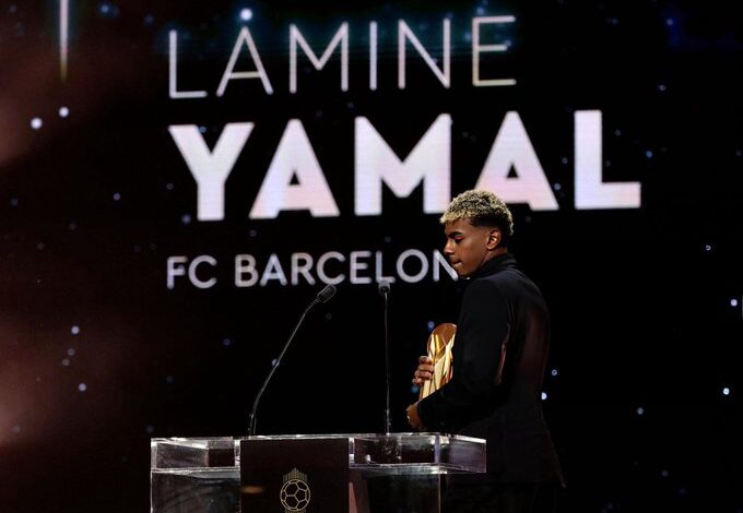 فاز لامين يامال بجائزة “كوبا” لأفضل لاعب شاب في العالم خلال حفل جوائز الكرة الذهبية في فرنسا.