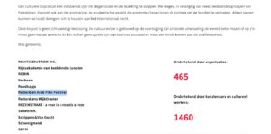 أعلن مهرجان روتردام للفيلم العربي (RAFF)، إلى جانب ٤٦٥ مؤسسة ثقافية و١٥٠٠ فناناً وعاملاً في الحقل الثقافي من هولندا وبلجيكا، عن دعمه الكامل للموقف الجماعي القاضي بمقاطعة المؤسسات الإسرائيلية المتورطة في انتهاكات حقوق الإنسان وجرائم الإبادة الجماعية ضد الشعب الفلسطيني، وذلك استجابةً للنداءات المتكررة من الفنانين والمجتمع المدني الفلسطيني.
