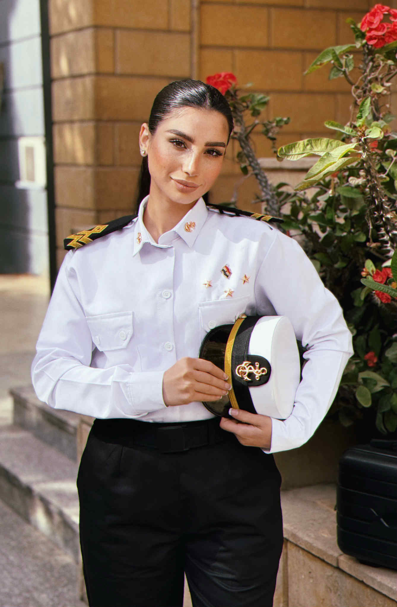 خطفت ملكة جمال مصر همت همام الأنظار بعد ظهورها باليونيفورم الرسمي لضابط البحرية، في جلسة تصوير جسّدت من خلالها روح الانضباط والفخامة في آنٍ واحد.