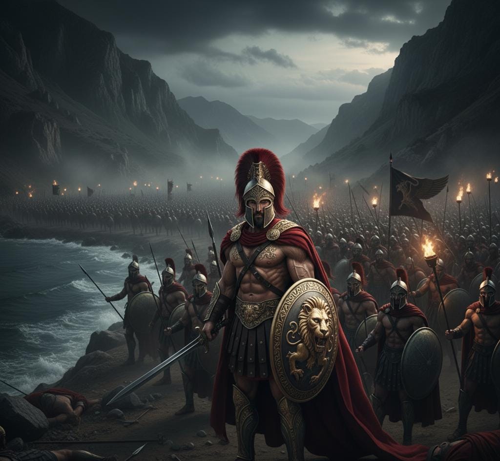 الأجواء قاتمة، ليلية كئيبة كملابس الجيش الموحّد الممتلئ بالحديد. ألسنة السيوف تتباهى بغرور تحت ألسنة المشاعل، وألسنة البعض لم تخلُ من الهمهمات اللاذعة. تسرّب صوتٌ من بين التكاتف: ليونيداس. يسخر منّا، يحاول تشجيع سبعة آلاف رجل ليواجهوا عددًا لا حصر له من الفرس المدرّعين، وأضاف بغضب: