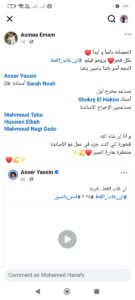 جدير بالذكر أن آخر أعمال الفنانة أسماء إمام مسلسل أبو العروسة الجزء الثالث، من بطولة سيد رجب وسوسن بدر ونيرمين الفقي ومدحت صالح وميدو عادل وخالد كمال، وعدد آخر من الفنانين، تأليف وإخراج هاني كمال.