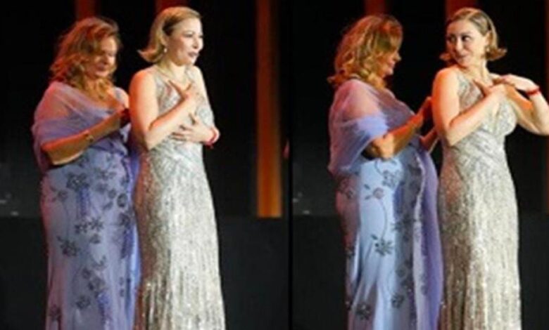 عبرت الفنانه منه شلبي عن فرحتها و امتنانها للفنانه يسري لحظه صعودها علي خشبه المسرح بتقبيلها يد الفنانه يسري و شكرت الجمهور و كل من كان له الفضل في وصولها الي المجد و الشهره ،و اثناء لحظه تكريمها تعرضت الفنانه يسري الي موقف محرج اصابها بالخوف و القلق.