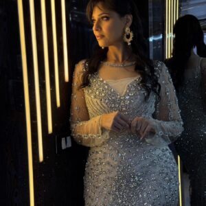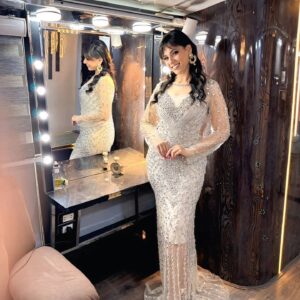وجاءت الجلسة أنيقة ومميزة للغاية، حيث ظهرت الفنانة نورهان بإطلالة أنيقة ومميزة بفستان لامع يميل للون الزيتي من تصميم الفاشون ديزاينر نسمة نبيل ، والتي خطفت الأضواء إليها بقوة خلال أحداث الجلسة.