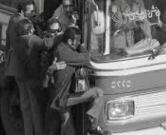 البعض جالس على الكراسي، والبعض الآخر، تطول رأسه سقف الباص، والبعض يقطر عرقه على عتبات الزمن.