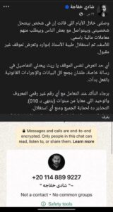 وأكد خفاجة ضرورة التأكد من عدم التعامل مع أي رقم سوى رقمه المعروف والذي يستخدمه منذ سنوات، مشدداً على أن هذا التحذير لحماية الجميع ومنع أي استغلال.