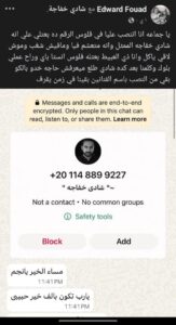 وقال:”وصلني خلال الأيام اللي فاتت إن في شخص بينتحل شخصيتي وبيتواصل مع الناس وبيطلب منهم معاملات مالية باسمي. للأسف تم استغلال طيبة الأستاذ إدوارد واتعرض لموقف غير مقبول.”