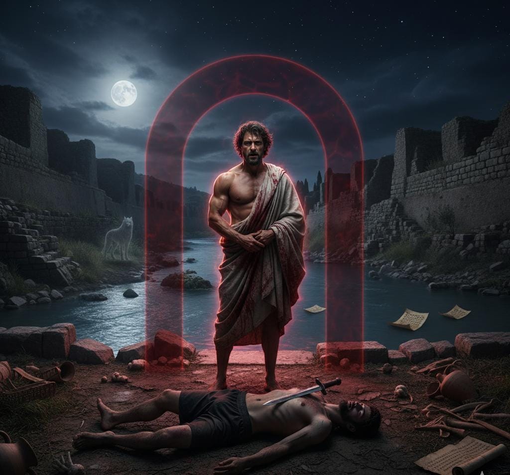 رمى سيفه، ومسح دماءَ أخيه بملابسه، وقال: “هكذا يُقتل كلُّ من يعبر أسوارَ مدينتي.” ثم صرخ بالوجود قائلًا: “من دمِ أخي تُقامُ روما، ومن موته تُولد الحياة.”