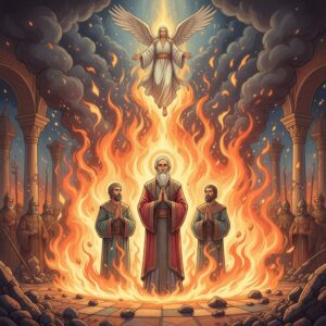 لكن حصلت معجزة .. النار ما حرقتهمش ، وظهر معاهم ملاك يحميهم .. وخرجوا من النار سليــــــــمين.