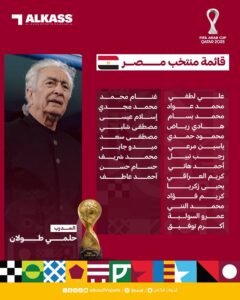 أعلن حلمي طولان المدير الفني لمنتخب مصر الثاني، القائمة المشاركة في بطولة كأس العرب.