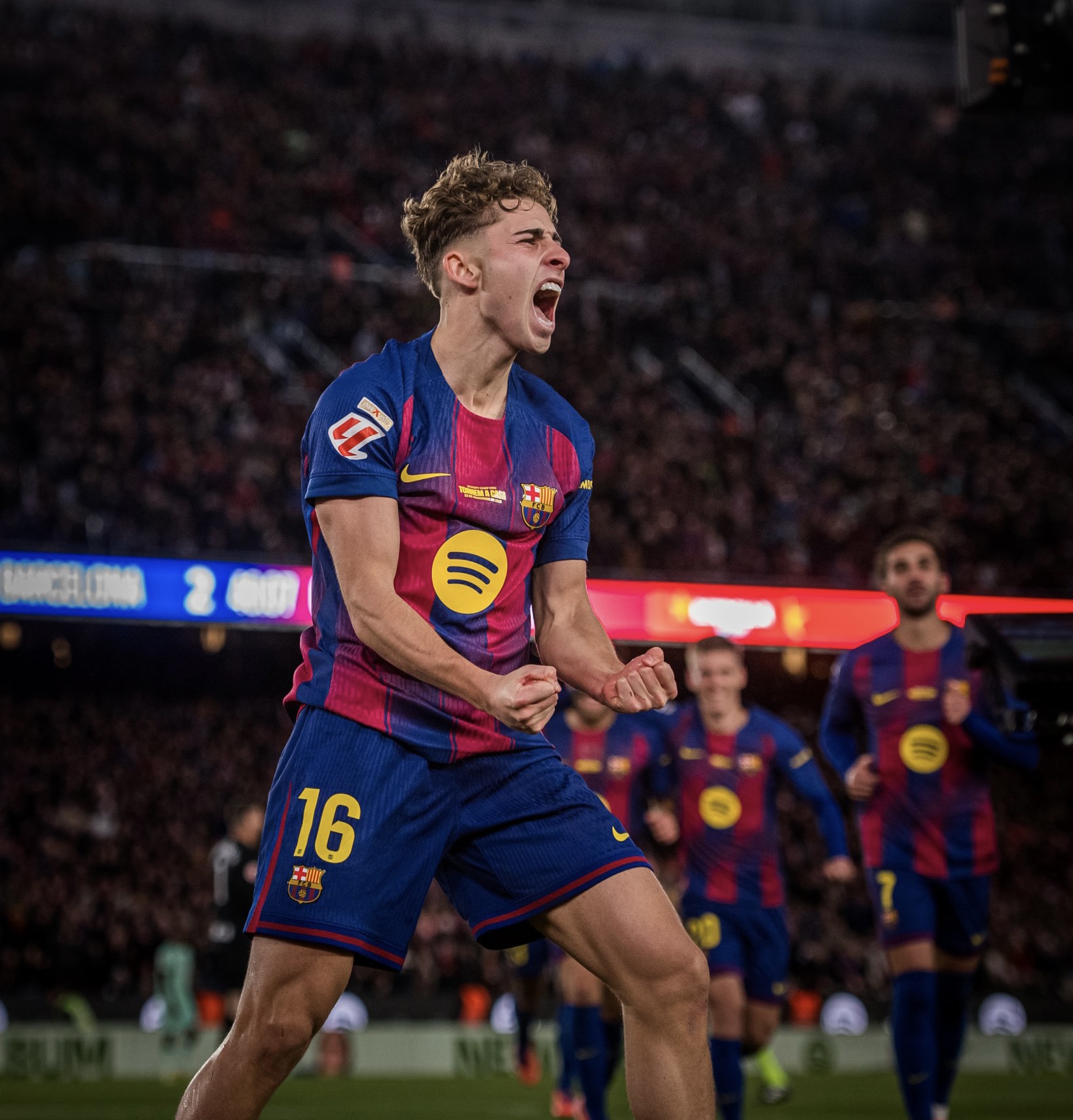 وعاد توريس للتسجيل في الدقيقة الثالثة من الوقت بدل الضائع للشوط الأول بعد انفراد تام بحارس المرمى عقب تمريرة رائعة بوجه القدم الخارجي من لامين يامال.