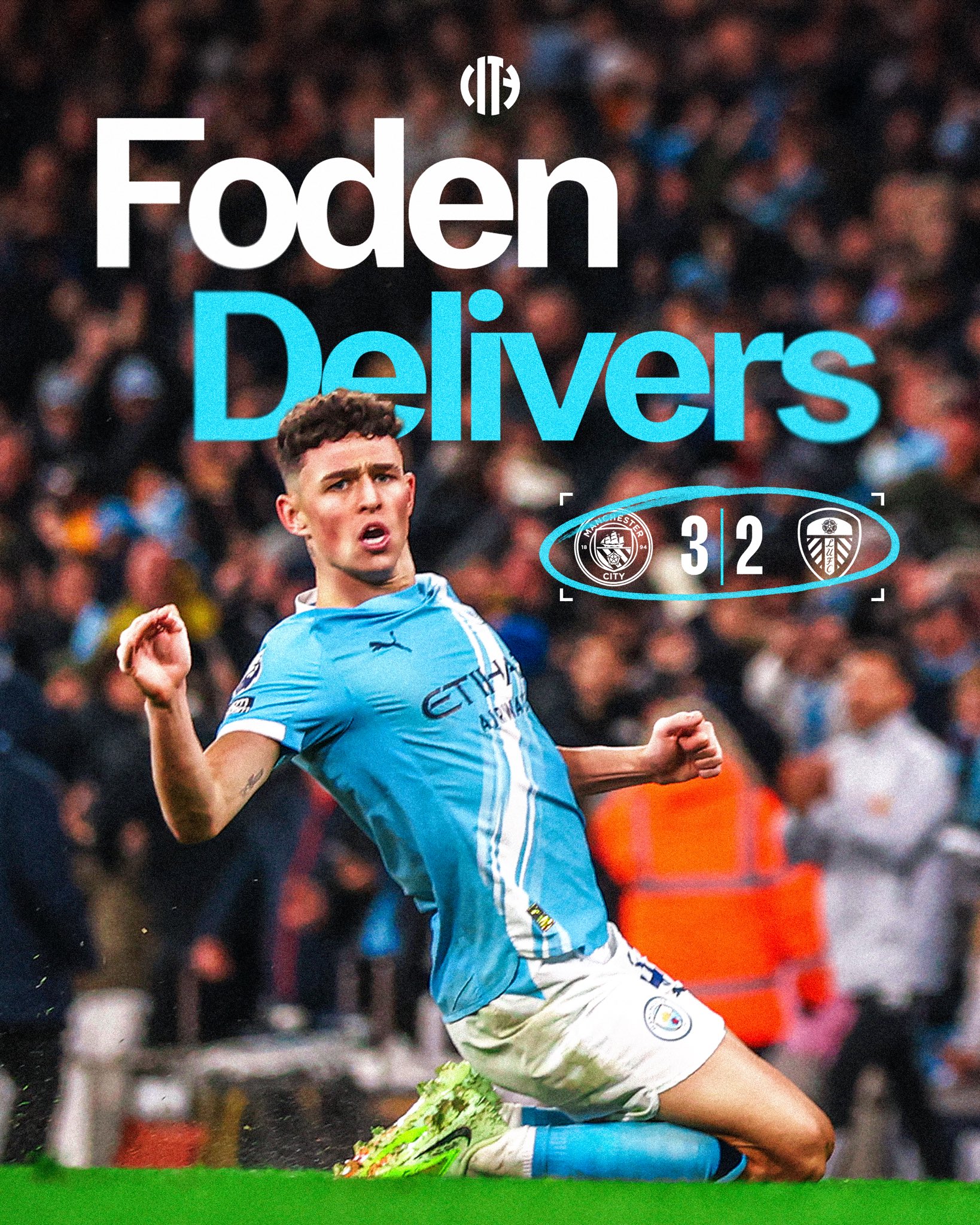 أنقذ فيل فودين فريقه مانشستر سيتي وقاده لفوز مثير ودرامي على ليدز يونايتد بثلاثة أهداف مقابل هدفين، في المباراة التي جمعتهما ضمن الجولة 13 من الدوري الإنجليزي وأقيمت بملعب الاتحاد.