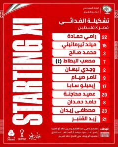 بينما شارك خالد النبريص وأحمد القاق بدلا من تامر صيام وعميد محاجنة في الدقيقة 74.