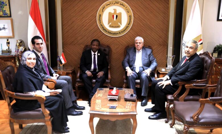 وزير التعليم العالى يستقبل مفوض التعليم والعلوم والابتكار بالاتحاد الإفريقي لبحث مجالات التعاون المشترك