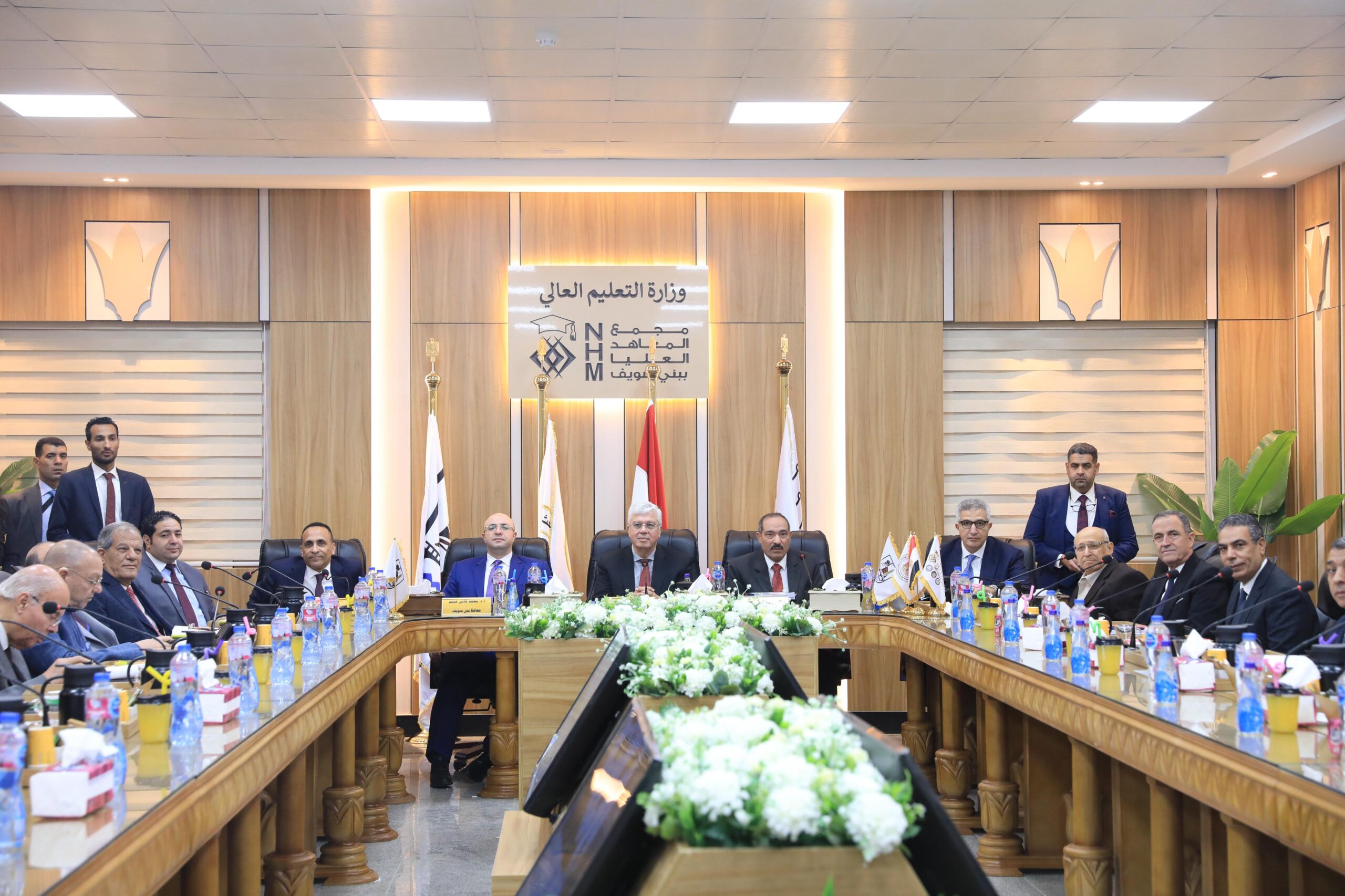في بداية الاجتماع، أكد الوزير استمرار انعقاد اجتماعات المجلس بالتناوب داخل المعاهد المختلفة، في تقليد جديد يستهدف التقييم الميداني لإمكاناتها وأدائها، وتقييم قدراتها المادية والبشرية، وتعزيز دورها الأكاديمي، مثمنًا دور المعاهد الحيوي في منظومة التعليم العالي، ومقدمًا الشكر للمهندس نادر نسيم رئيس مجلس إدارة مجمع المعاهد العليا ببني سويف، على استضافة اجتماع المجلس.