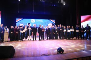 وشاهد الحضور فيديو حول شركة إنجاز التي تعد حلقة الوصل بين الدراسة والتطبيق العملي، لتأهيل الطلاب لسوق العمل، وتنفيذ مشروعات الجامعة في مختلف القطاعات، ورؤية الجامعة في أن تكون نموذجًا رائدًا للجامعة المنتجة ، فضلًا عن دورها في تنظيم مختلف الفعاليات الثقافية والفنية والرياضية والاجتماعية، وذلك تحت شعار “نستثمر في العقول .. لنبني الأصول”.