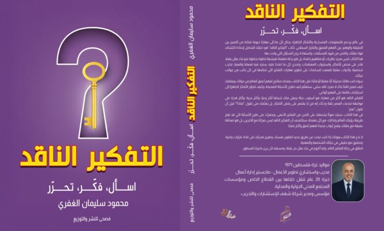 ضمن مشروعه الفكري المتكامل الذي يهدف إلى بناء وعي الإنسان، يقدم المدرب والاستشاري محمود سليمان الغفري كتابه الثامن بعنوان “التفكير الناقد”، والذي يأتي كدعوة صريحة لتحرير العقل من قيود التلقين، تحت شعار: “اسأل، فكر، تحرر”.