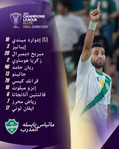 ويلتقي أهلي جدة في النهائي مع الفائز من نصف النهائي الآخر بين شباب أهلي دبي وماتشيدا.