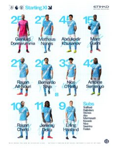 الدقيقة الخامسة شهدت هدف اللقاء الوحيد، بينية من دوكو انفرد على إثرها هالاند وسجل الهدف.